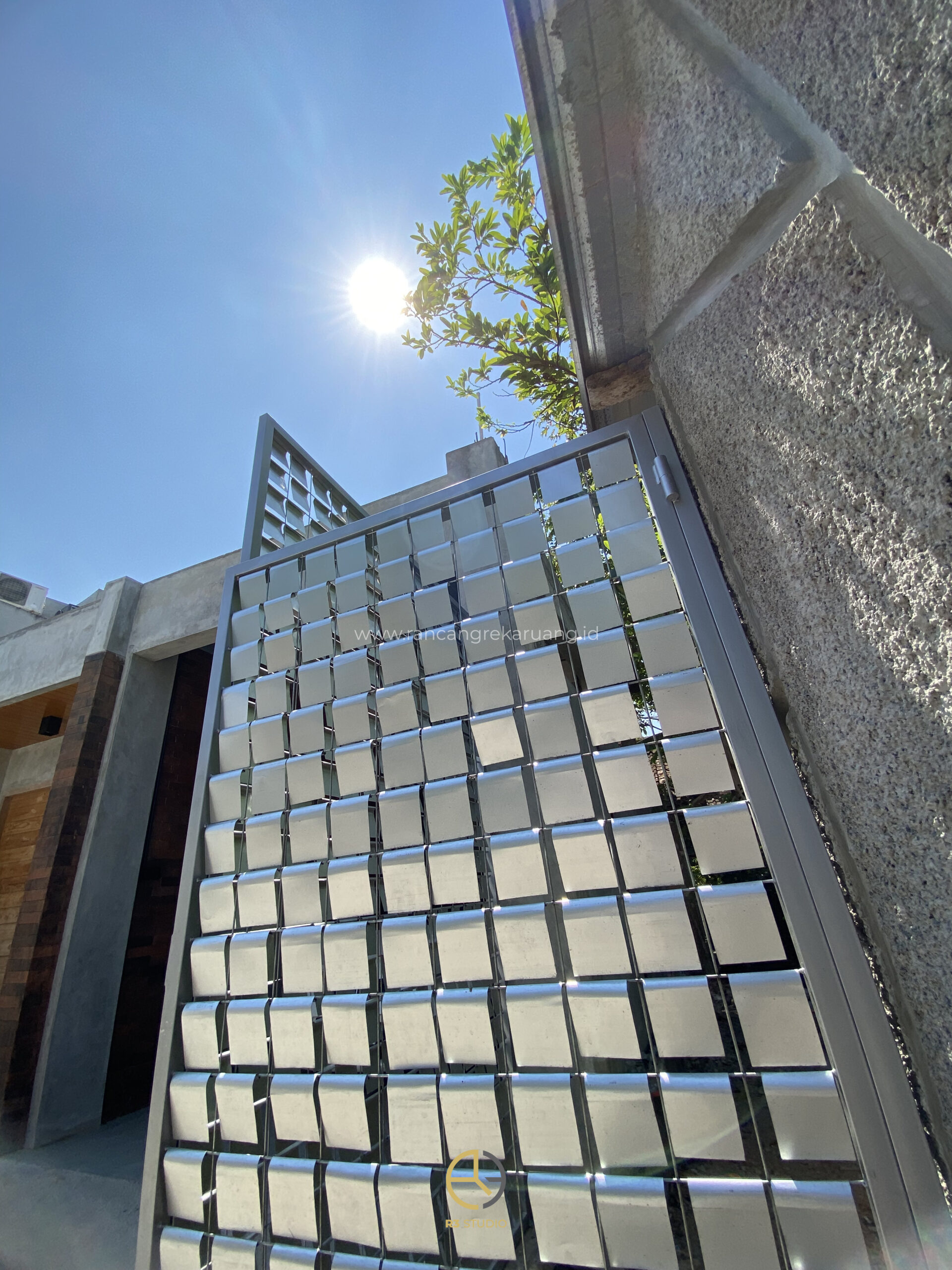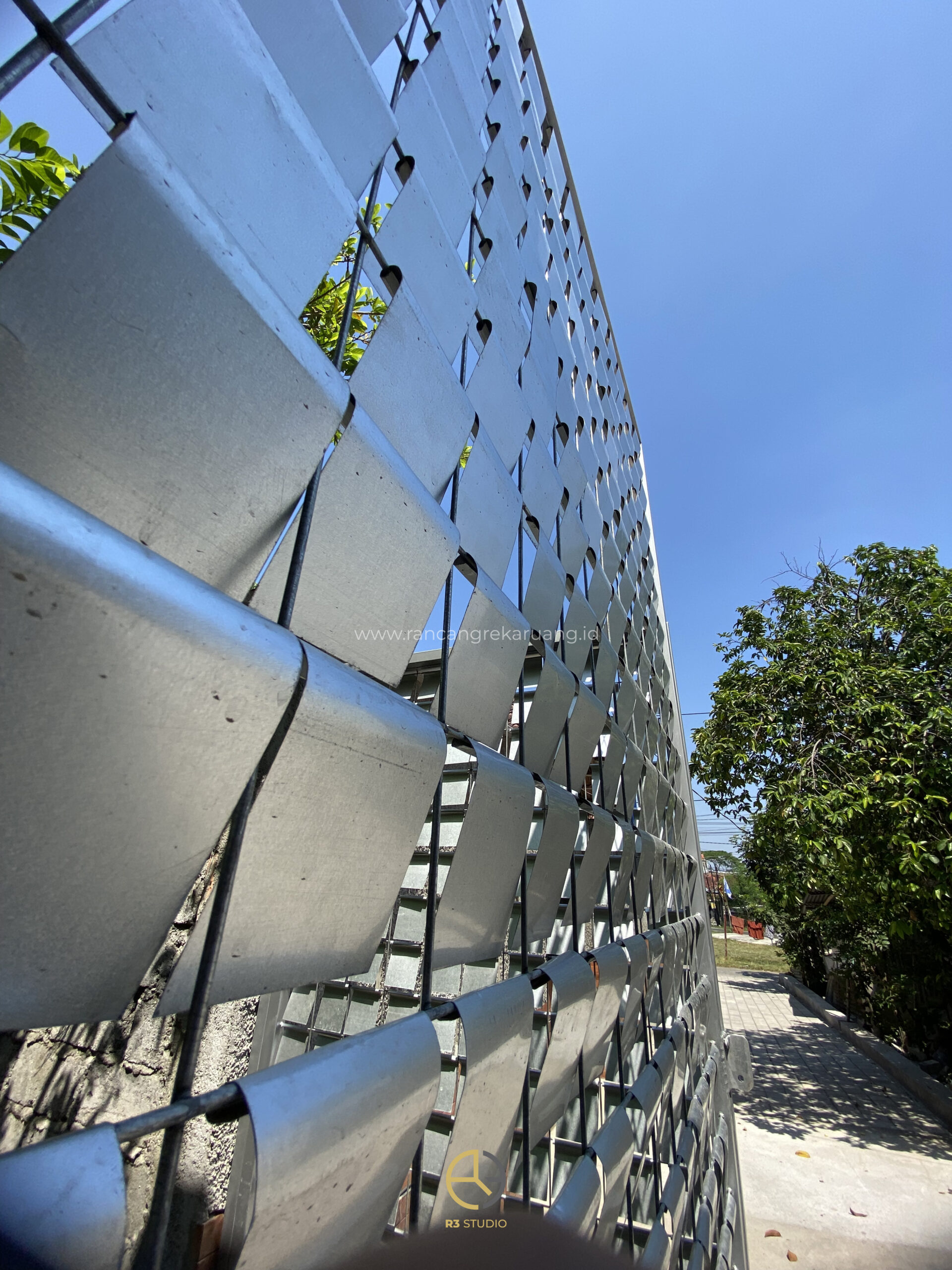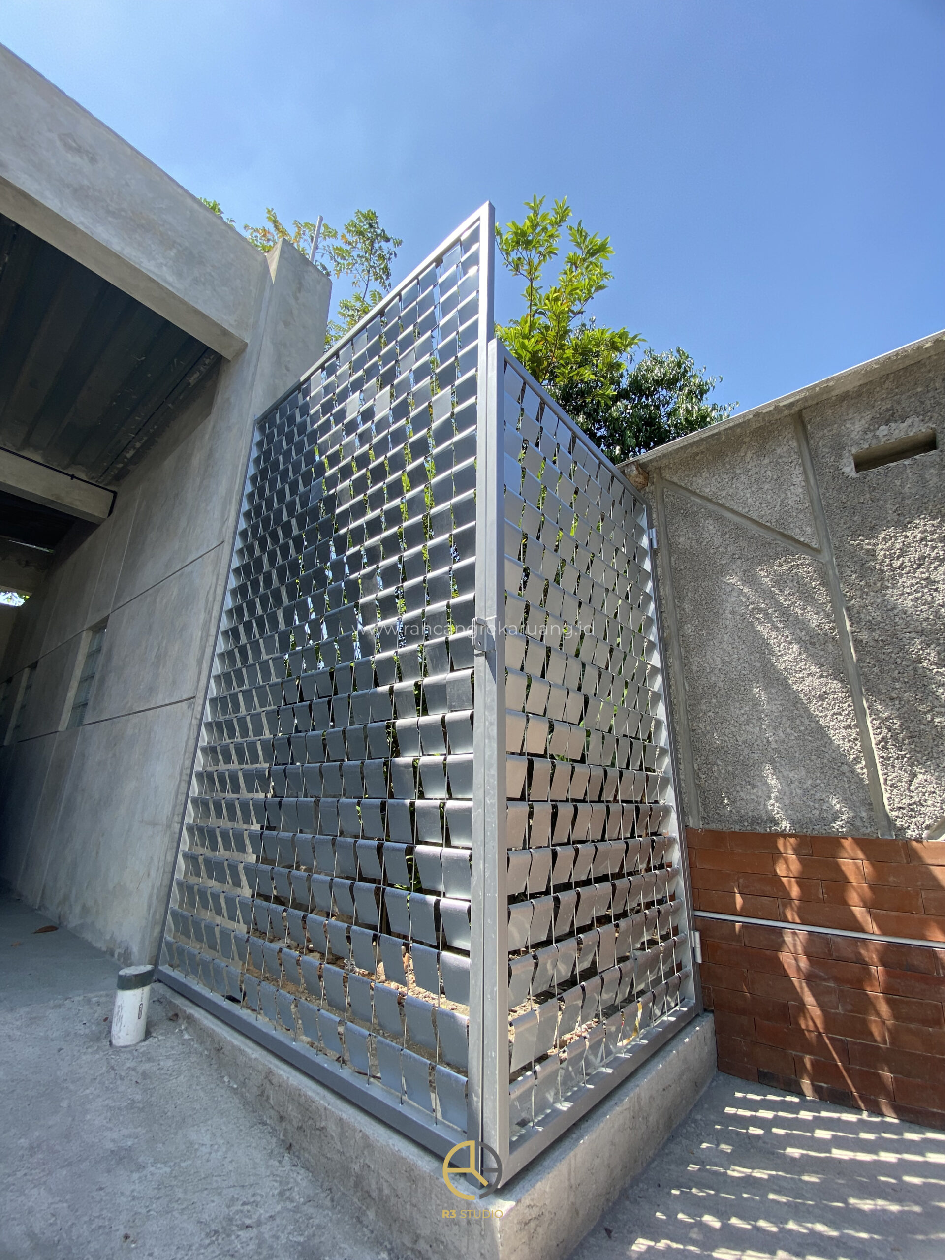 Selain fungsi keamanan, gerbang kini juga menjadi wajah depan sebuah bangunan. Pada proyek tertentu, seperti yang diterapkan di area kantor Studio R3, penerapan gerbang kinetik berhasil memberikan identitas visual yang kuat sekaligus menambah kenyamanan bagi pengguna. Elemen bergerak menciptakan bayangan dinamis di dinding, menghadirkan kesan bangunan yang selalu berubah sesuai arah sinar matahari.