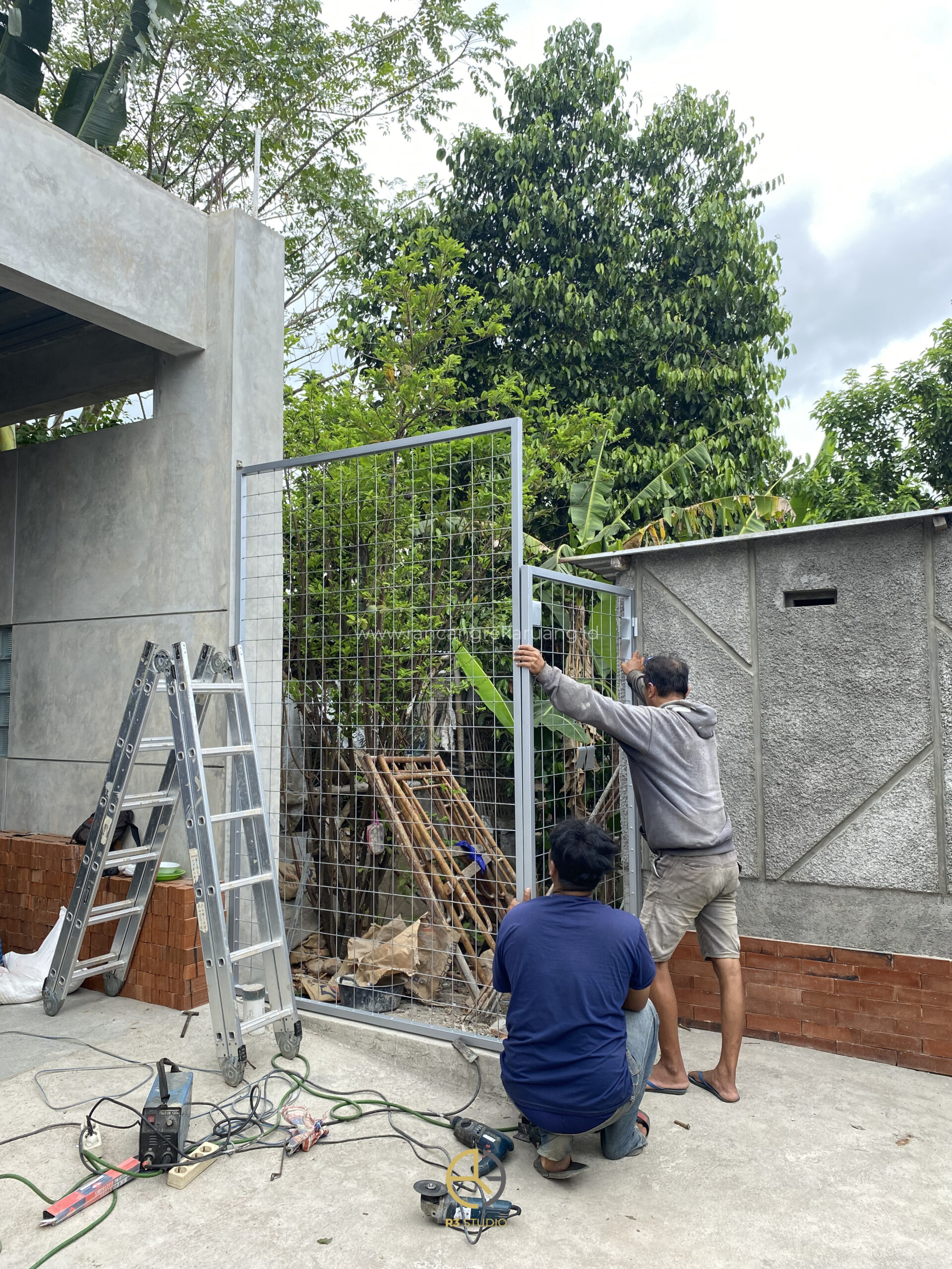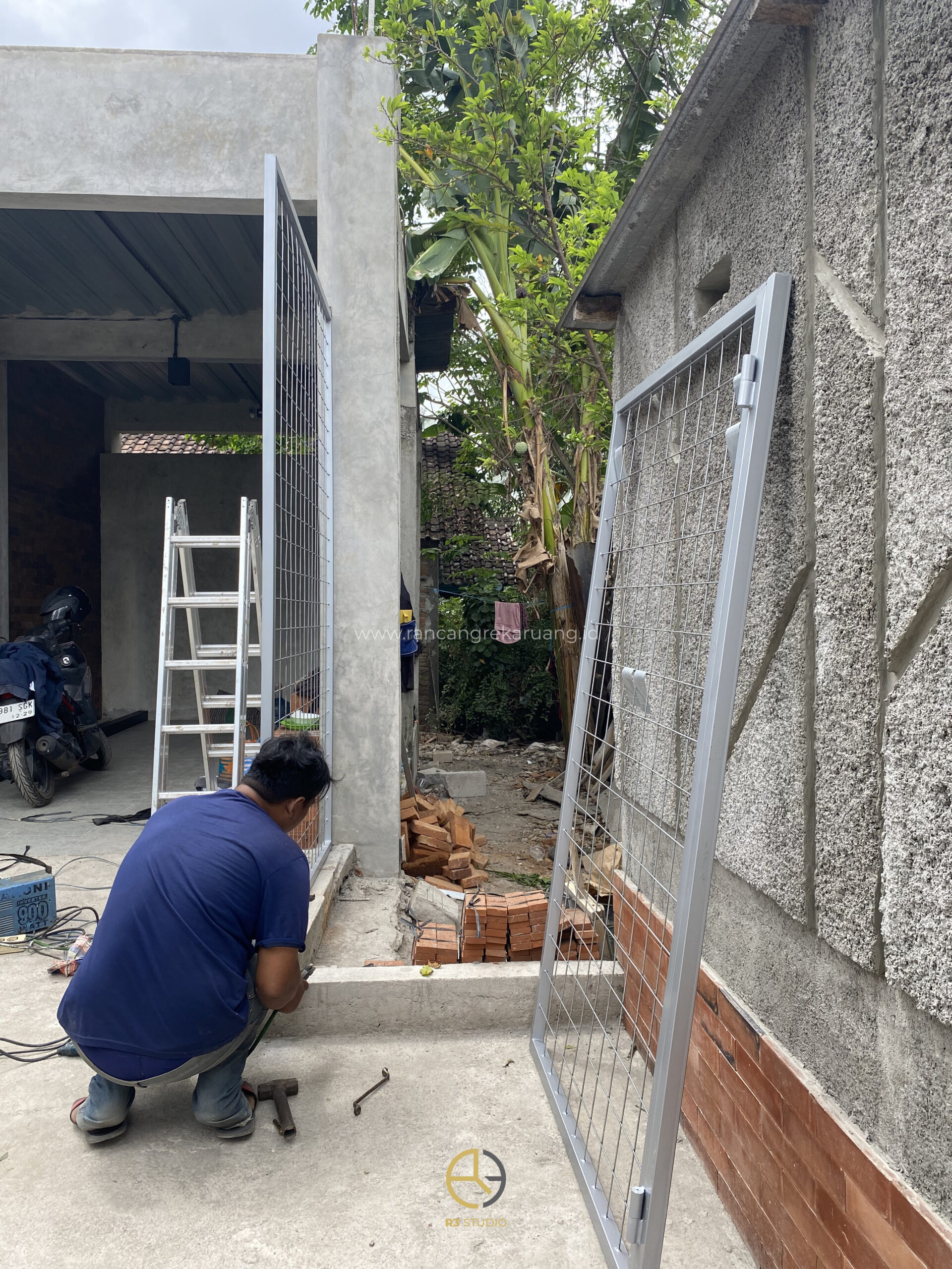 Salah satu inovasi yang menarik perhatian adalah pintu gerbang kinetik (kinetic gate), yang menggabungkan fungsi mekanik dengan estetika modern. Konsep ini juga telah diterapkan oleh Studio R3 pada pintu samping kantor yang menghubungkan halaman dengan lahan tetangga, menghadirkan elemen gerak yang bukan hanya fungsional, tetapi juga memperkaya pengalaman visual bagi pengguna ruang.